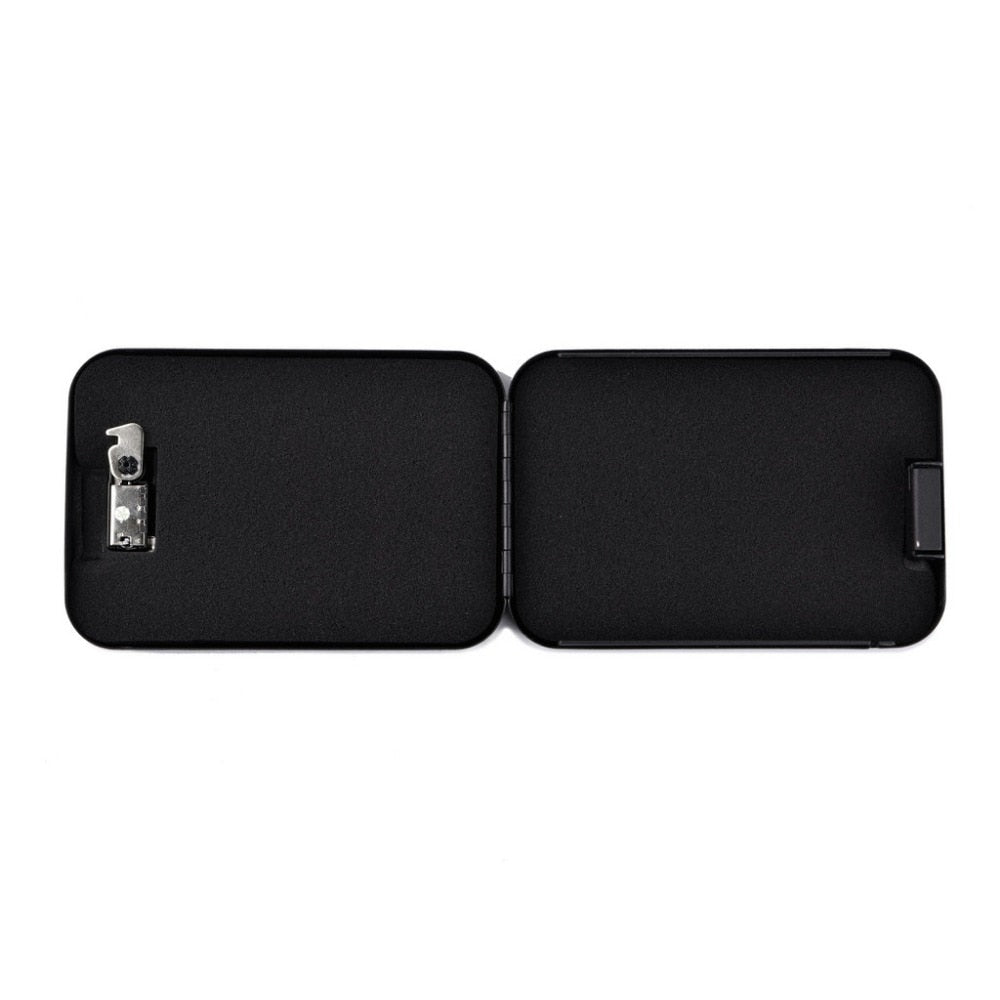 Coffre-fort avec mot de passe. L'avantage de ce coffre fort réside dans sa petite taille. Vous pouvez laisser vos objets de valeurs en ayant une assurance supplémentaire que personne n'y aura accès.